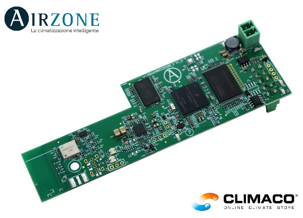 Webserver per la gestione dei sistemi Airzone da remoto mediante la piattaforma Cloud. Accesso alla piattaforma mediante browser o app (IOS o Android). Connessione alla rete Wi-Fi. Alimentazione mediante bus domotico del sistema.