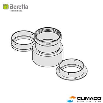 Il Kit sdoppiatore fumi Beretta è composto da uno sdoppiatore (Ø80/80) collegabile allo scaldabagno che permette l'aspirazione dell'aria e l'espulsione dei fumi.