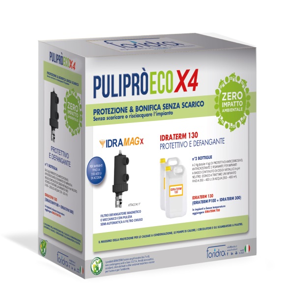 Serie "PULIPRO ECO" X4 composto da 1 filtro IDRAMAG + 4 KG di IDRATERM 130