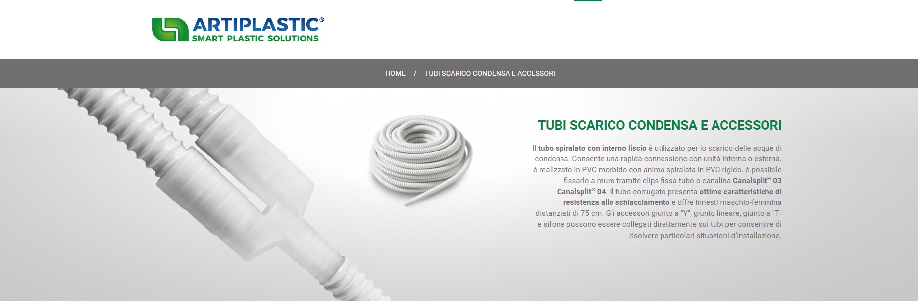 Il tubo è utilizzato per lo scarico delle acque di condensa. Consente una rapida connessione con unità di condizionamento interna o esterna.