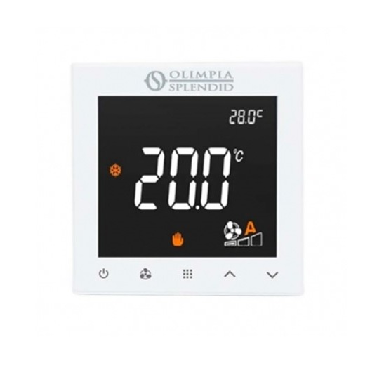 Termostato digitale con sonda ambiente, display retroilluminato e pulsanti touch.