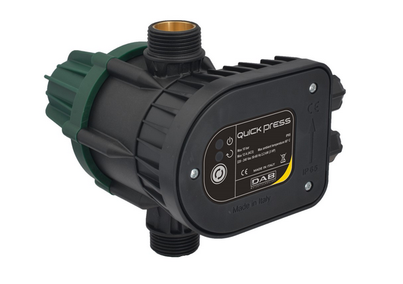 Quick Press è un dispositivo on/off che controlla l’avvio o l’arresto della pompa in funzione della richiesta. Arresta la pompa in caso di mancanza d’acqua e la protegge dalla marcia a secco. Può essere montato su pompe di superficie e su pompe sommerse. Il dispositivo compatto è e affidabile, dedicato soprattutto ad applicazioni residenziali.