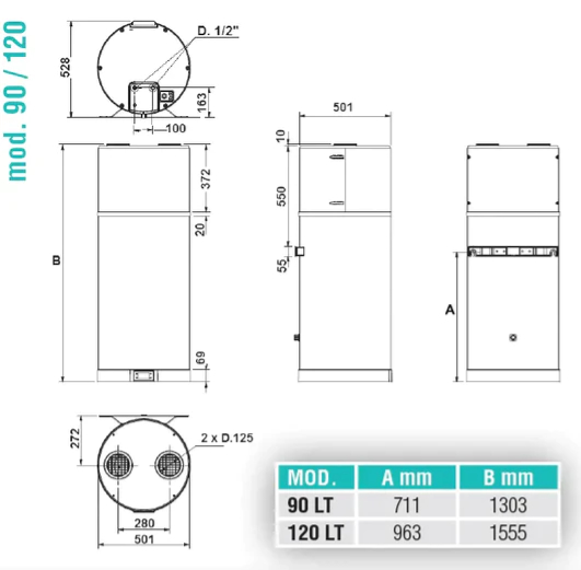 | Misure Unità Interna | H1555X510 DIAMETRO |